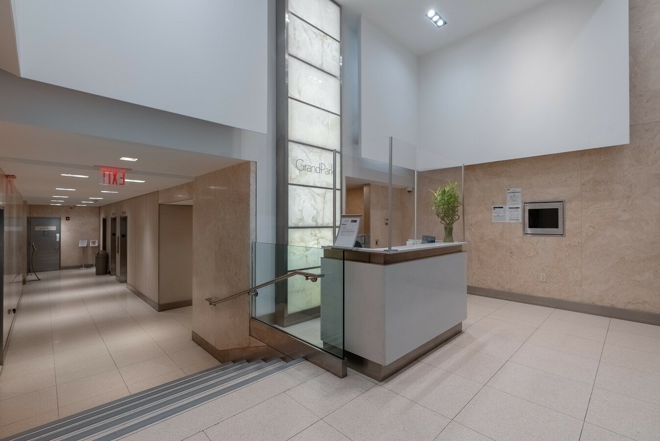 Located within the prestigious Grand Park Condominiums, this exceptional 2,500 square foot office space offers a prime opportunity right next to Grand Central Terminal. This turnkey suite is fully furnished and built-out as a standard office, featuring two private offices and a modern glass conference room. Enjoy the comfort and control with tenant-controlled HVAC, along with  abundant natural light streaming in from multiple sides of windows. The space is in excellent condition and comfortably accommodates 7 to 20 people. Additional features include a welcoming reception area, a convenient wet pantry, and finished 11-foot ceilings. There is a 24/7 attended lobby, ensuring security and convenience, as well as 24-hour access. The property boasts excellent connectivity with nearby metro and subway access, and the suite itself includes a kitchen area, accent and recessed lighting, central heating, partitioned offices, and air conditioning.
